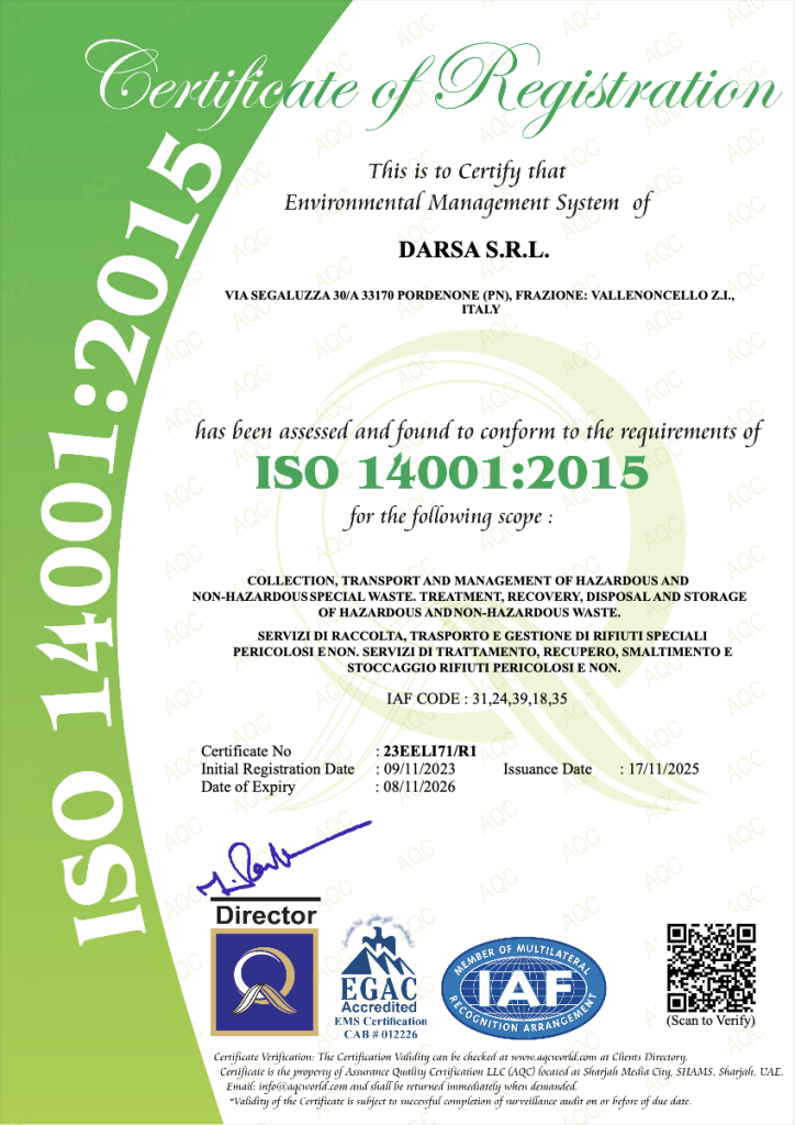 Siamo certificati per il nostro impegno nel minimizzare l’impatto ambientale delle attività. Ogni fase operativa è gestita con protocolli che tutelano l’ambiente, dalla movimentazione dei rifiuti alle fasi di trattamento.